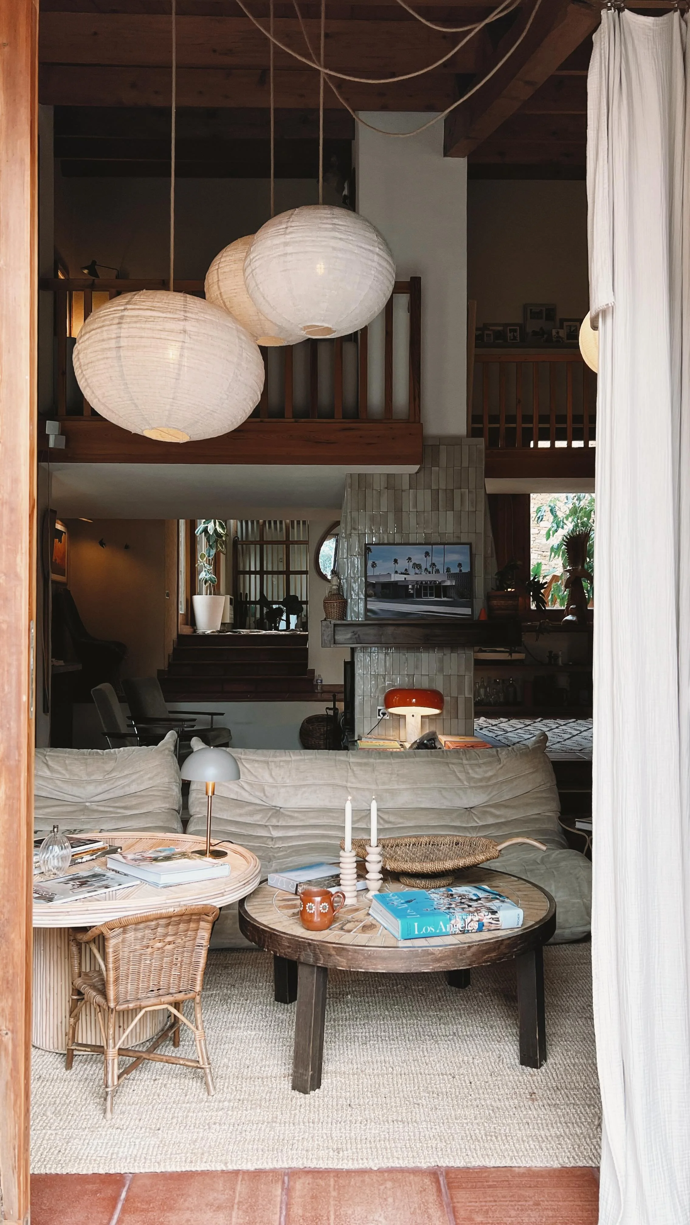 Nichée au cœur de la pinède, cette maison a su préserver son âme originelle, tout en accueillant une décoration vintage inspirée des États-Unis. Ici, chaque détail raconte une histoire : des teintes naturelles et douces, des pièces chinées avec passion, et un mobilier essentiellement issu de la seconde main.